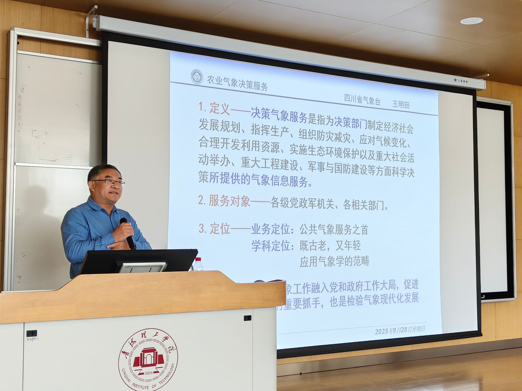 9月28日下午,经过了气候变化与气象国际合作(前沿篇)专题的洗礼,生态与环境科学学院大气科学专业2024级全体学生在特邀中国气象局决策服务首席、四川省气象台正高级工程师王明田首席深入浅出的带领下继续探索气象服务经济社会发展(创新篇)的可能性,聚焦“决策气象服务的能力培养——农业与生态气象”。作为我专业本学期“气象服务应用”模块的重要实践教学环节,此次授课为同学们打开了气象服务对接国家需求的关键窗口。