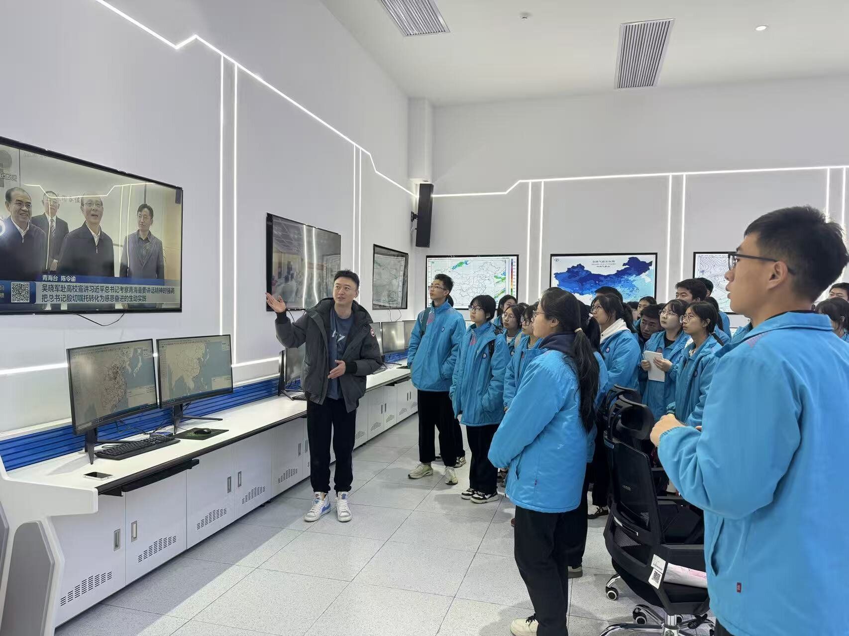 活动伊始,拦继元老师在学院一楼大厅为来访师生作系统介绍,从学院发展历程、核心学科架构、特色科研方向到未来发展规划,清晰地展现了学院在学科发展、人才培养方面的核心竞争力。随后,师生一行前往气象台,近距离观摩气象研讨实操演示,认真聆听专业老师对气象数据采集、分析流程的详细讲解,同学们始终专注投入,不时举手提问,对气象观测背后的科学原理充满好奇。