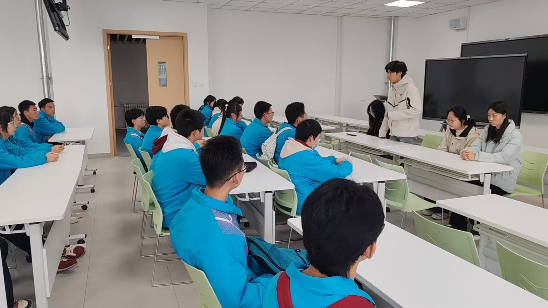 参观结束后,双方师生齐聚学院四楼会议室开展深度交流。我院4名优秀学生代表结合自身专业学习经历,分享了大学学业规划、大学生活学习中的趣事与心得,针对高中同学们提出的专业选择、学习方法等疑问进行了耐心细致的解答。同学们畅所欲言,纷纷表达此次研学的收获与感悟,不少同学表示通过实地参观,不仅解开了心中对环境科学领域的诸多疑惑,更坚定了未来投身科学研究的志向。