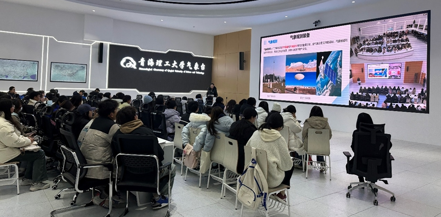 为提升我院大气科学专业教师实践教学能力,同时为青海师范大学地理科学学院学生提供学习及实践平台,2023 年 11 月28 日上午 10 时许,学院教师刘鑫、李崇帆和周少龙在气象台为地理科学专业 77 名学生讲授了《气象学与气候学》课程的天气预报实习公开课。公开课围绕气象观测、气象数据和气象数据的应用三个主题展开。讲述了地面气象观测的历史变迁过程,气象数据资料广播分发系统(CMACast 系统)以及为气象预报人员提供不同时间尺度的天气预报工作平台的气象信息综合处理系统(Micaps系统)。